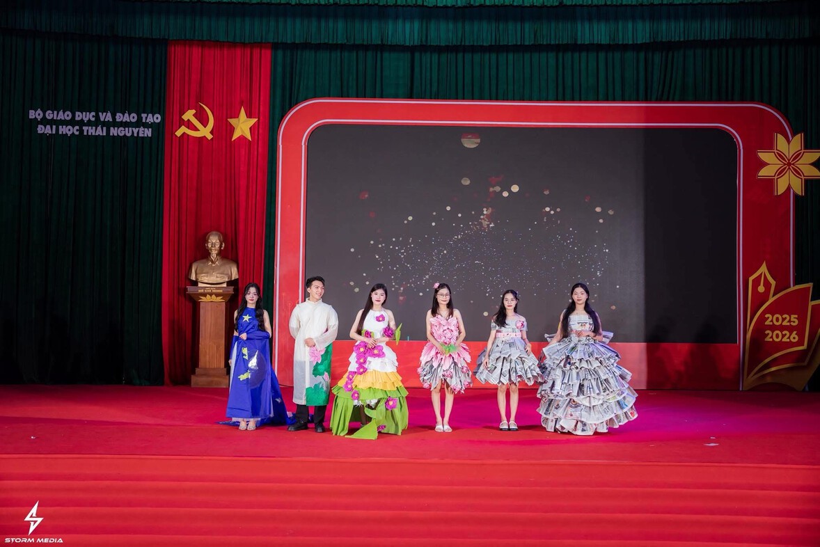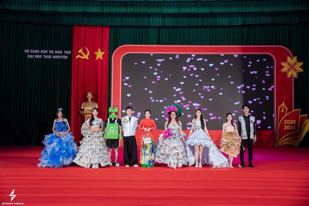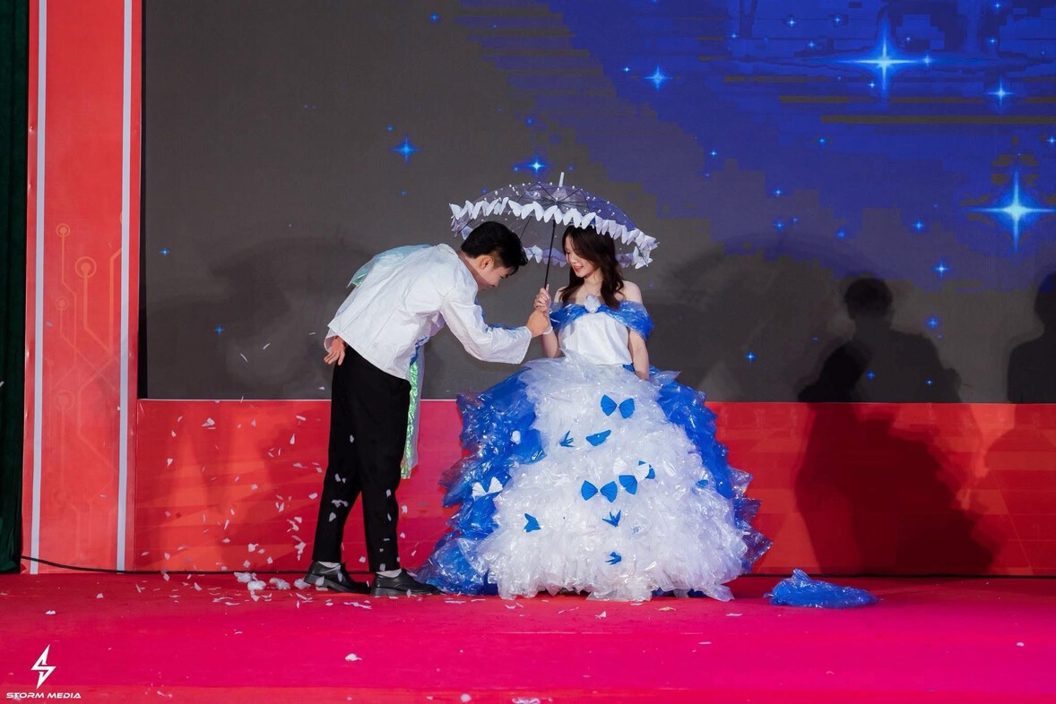 Trao giải cuộc thi “Thiết kế thời trang tái chế” trong tiếng reo hò, ánh đèn rực rỡ và niềm tự hào lan tỏa khắp khán phòng.