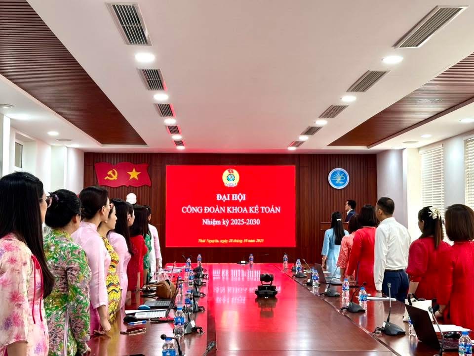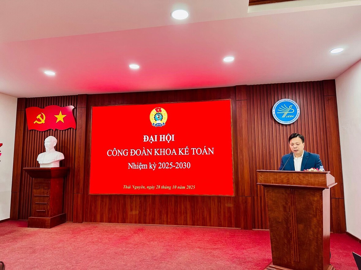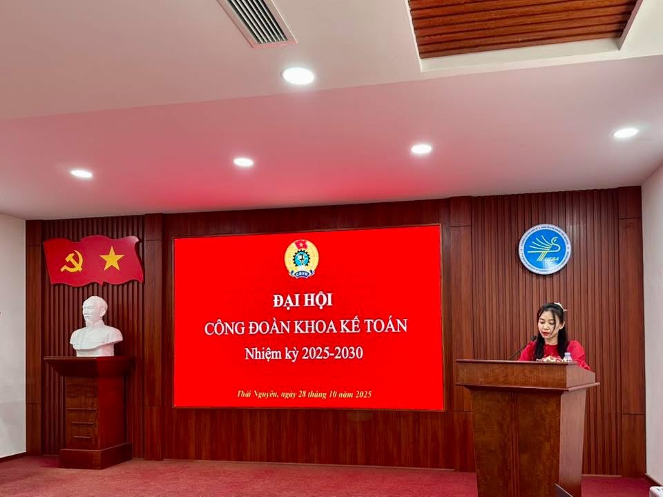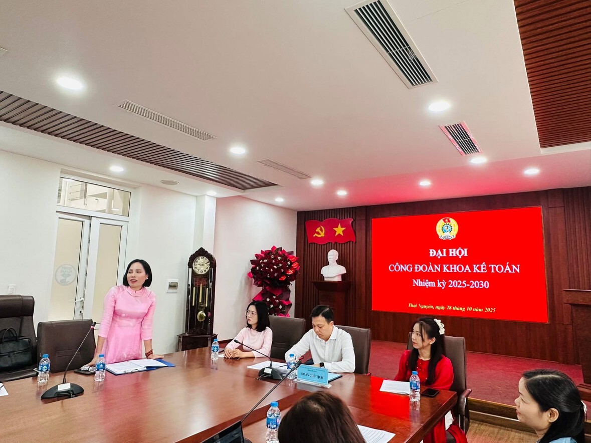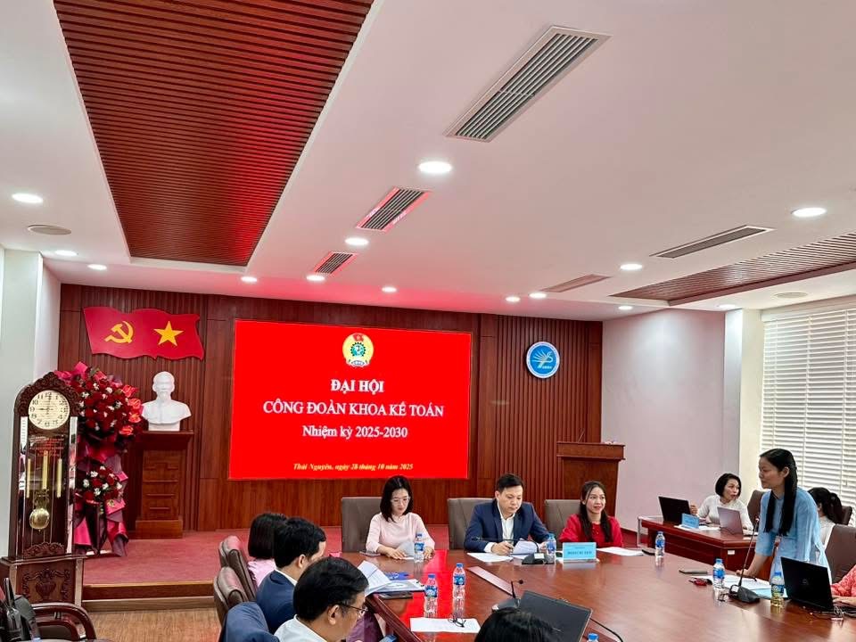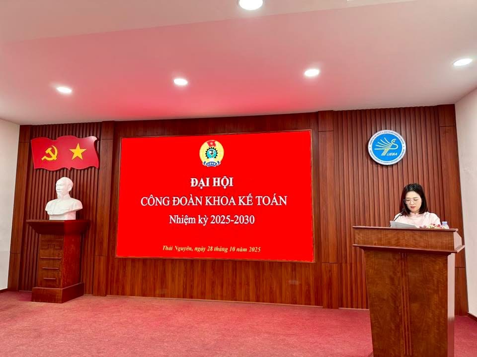 28/10/2025Sáng ngày 28/10/2025, tại Phòng họp A - Trường Đại học Kinh tế & Quản trị Kinh doanh (ĐH Thái Nguyên), Công đoàn Khoa Kế toán đã long trọng tổ chức Đại hội Công đoàn Khoa Kế toán lần thứ V, nhiệm kỳ 2025-2030.