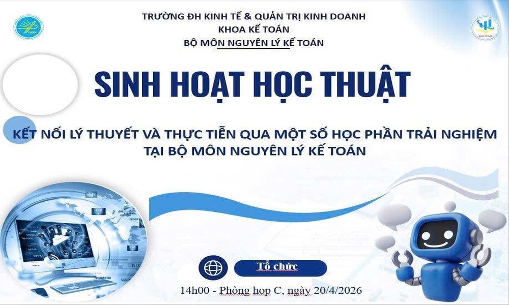 Ngày 20/04/2026, Bộ môn Nguyên lý kế toán - Khoa Kế toán, Trường ĐH Kinh tế & QTKD đã tổ chức buổi Sinh hoạt học thuật với chủ đề: “Kết nối lý thuyết và thực tiễn qua một số học phần trải nghiệm”